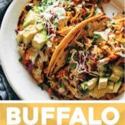Keywords: buffalo chicken, instant pot buffalo chicken, chicken tacos, buffalo chicken tacos, weeknight dinner